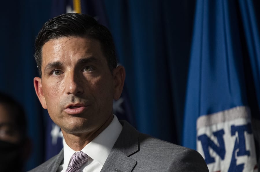 In a news conference in Washington, acting Department of Homeland Security Secretary Chad Wolf said agents have been assaulted with lasers, bats, fireworks, bottles and other weapons and “yet the city of Portland takes little to no action.”