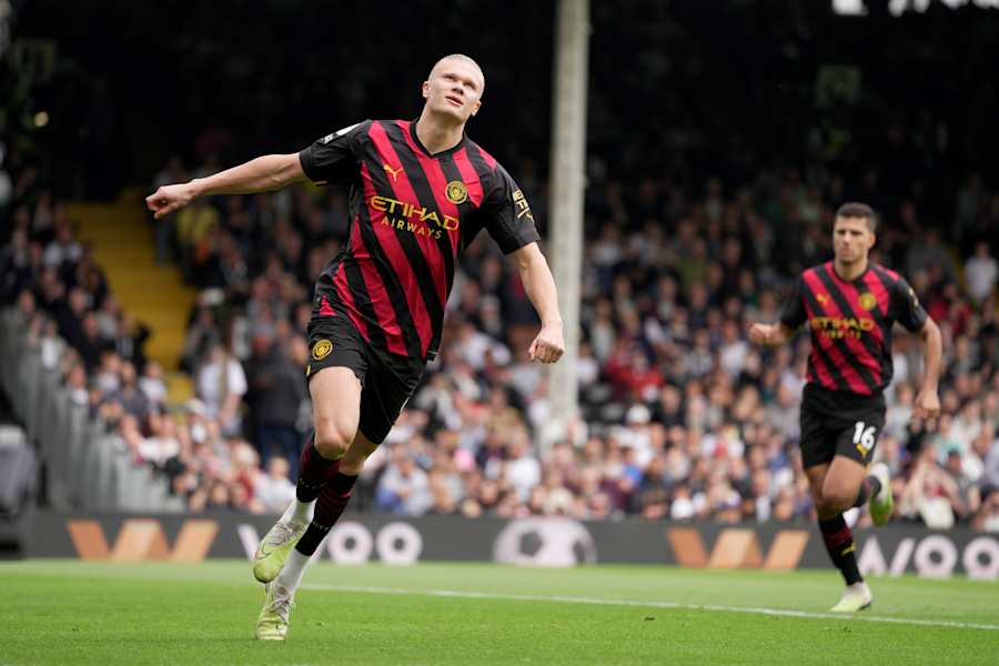 Haaland opened the scoring from the spot at Craven Cottage, with Carlos Vinicius equalizing for Fulham in the 15th. Julian Alvarez scored the winner in the 36th as the defending champions moved a point ahead of long-time leader Arsenal, with a game in hand.