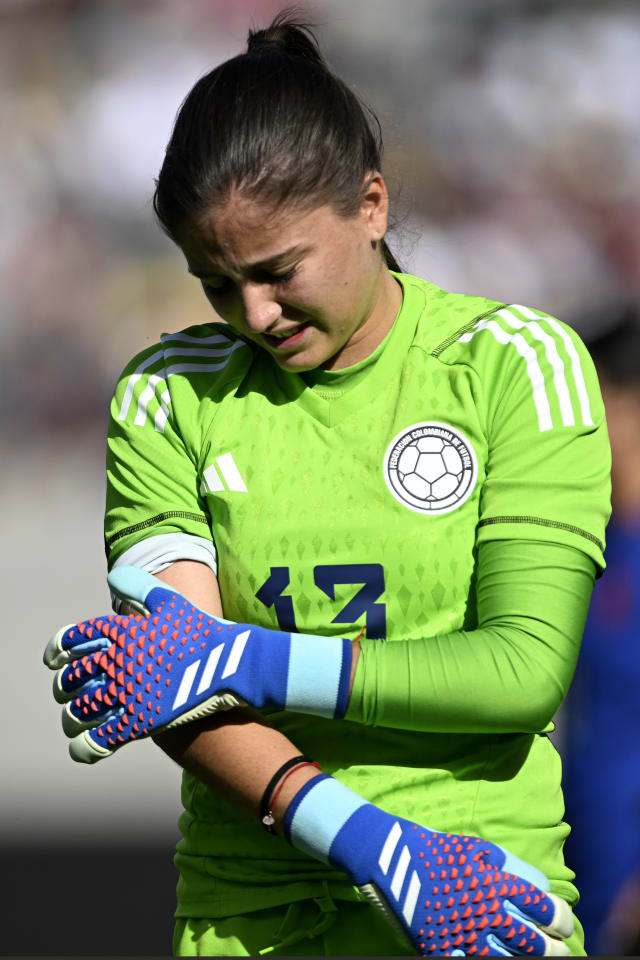 Colombia goalkeeper Natalia Giraldo had to leave the match in the first half after she was injured while making a save on Alex Morgan's shot. Giraldo was replaced by backup Sandra Sepulveda.
