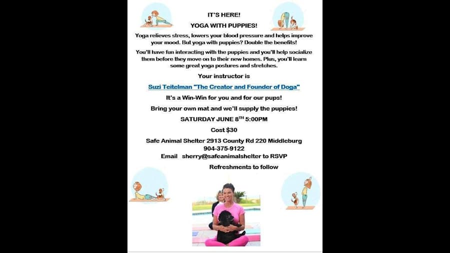 Safe Animal Shelter in Middleburg is holding a "Puppy Yoga" class on Saturday.