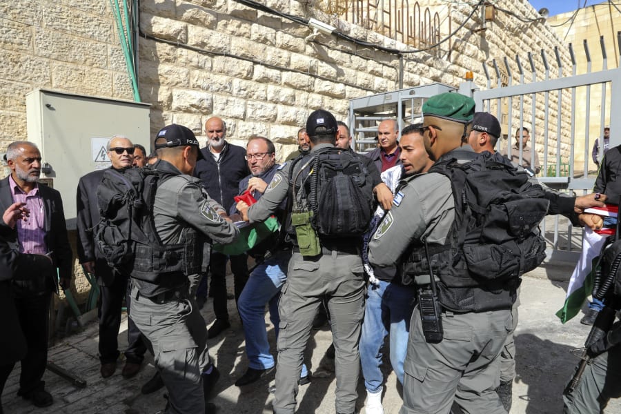Several dozen Israeli protesters gathered about a kilometer (half a mile) away from the cave, screaming “shame” as Israeli police held some of them back. Journalists and protesters were not allowed near the holy site.