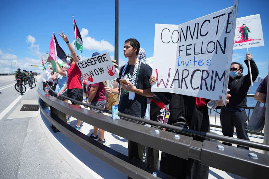 Trump was waiting on the stone steps outside his Mar-a-Lago estate in Palm Beach, Florida, to greet the Israeli leader on the fifth day of his visit to the U.S., his first trip abroad since Israel’s war with Hamas began nine months ago.