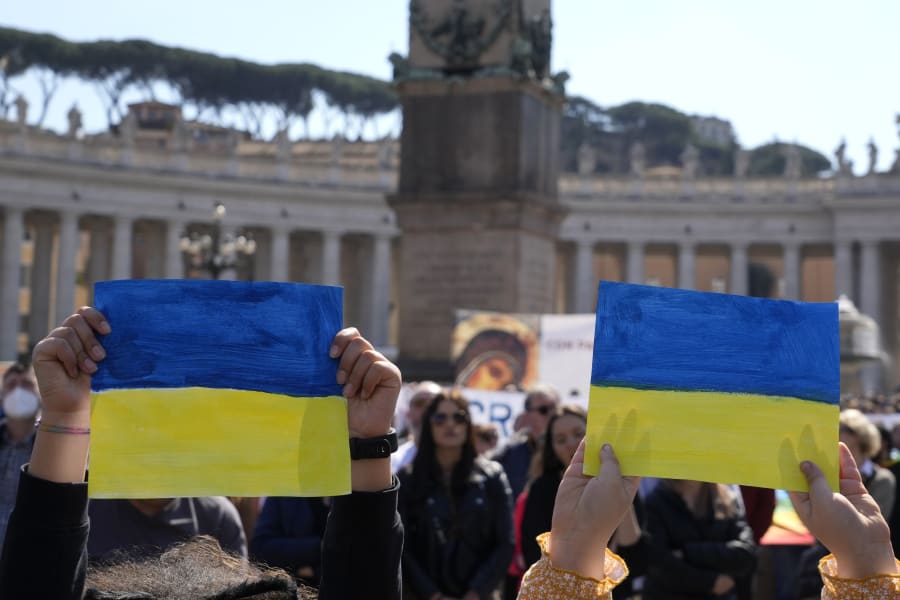 “In the name of God, I ask: ‘Stop this massacre,’” Francis said, sparking applause from the pilgrims, tourists and Romans, some of whom held Ukrainian flags, in the square.