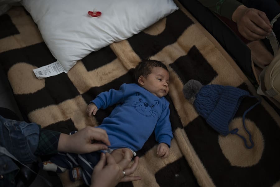WARSAW, Poland – Yulia Kalachemkov is staying at a refugee center in Warsaw with her children. They are among the people fleeing Ukraine, which the United Nations refugee agency says numbers at least 2.5 million.