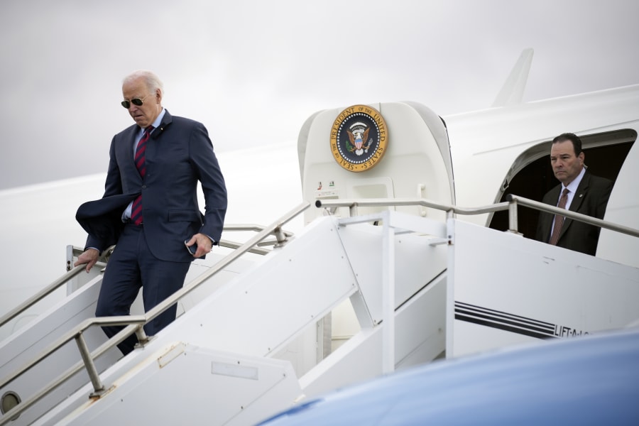 The president's brief remarks — roughly eight minutes before he headed to a fundraiser for his reelection campaign — come as he's trying to show the nation as 2024 looms how his policies are benefitting regular Americans with “kitchen table” problems. The Democratic president is also ramping up his fundraising as he prepares for a potential rematch with Republican former President Donald Trump next year.