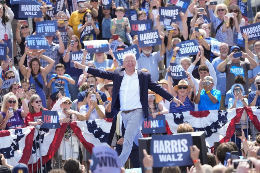 Walz is a former south central Minnesota U.S. House member and is appearing with Harris in the city of Eau Claire, which is a key target for the Democratic ticket and just a little more than 80 miles from his home in St. Paul.