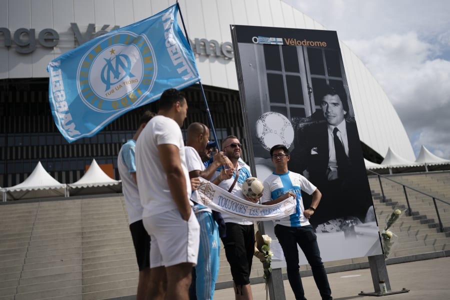 Marseille fans, however, continued to adore Tapie. Admirers on Sunday attached bouquets of flowers to a portrait of Tapie erected outside the club's stadium.