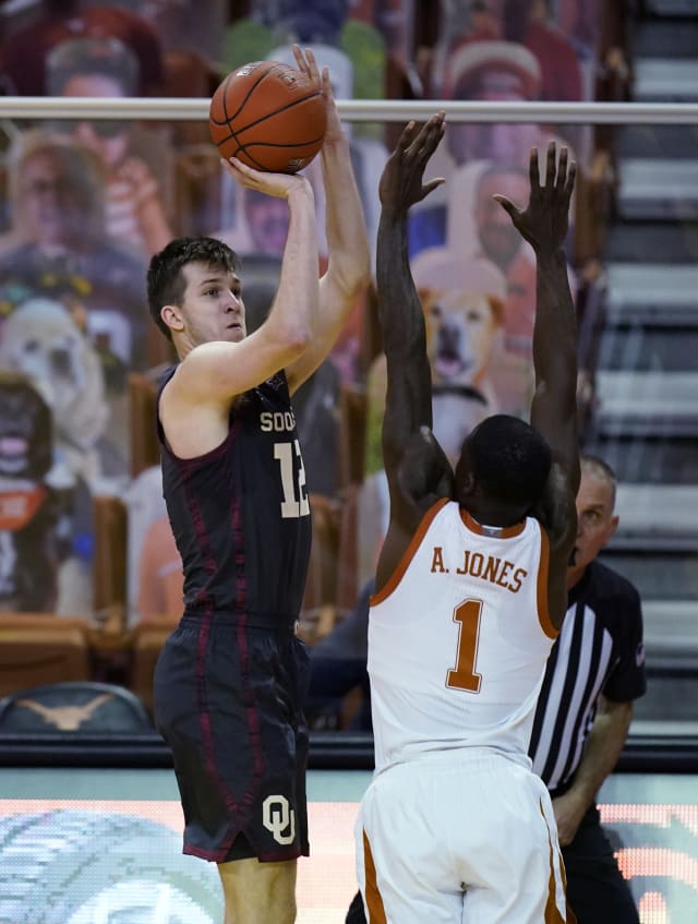 Elijah Harkless scored 13 and Umoja Gibson had 12 for the Sooners (10-4, 6-3). Before his late free throws, Reaves had a key three-point play with a drive and layup that drew a fifth foul on Texas forward Greg Brown.