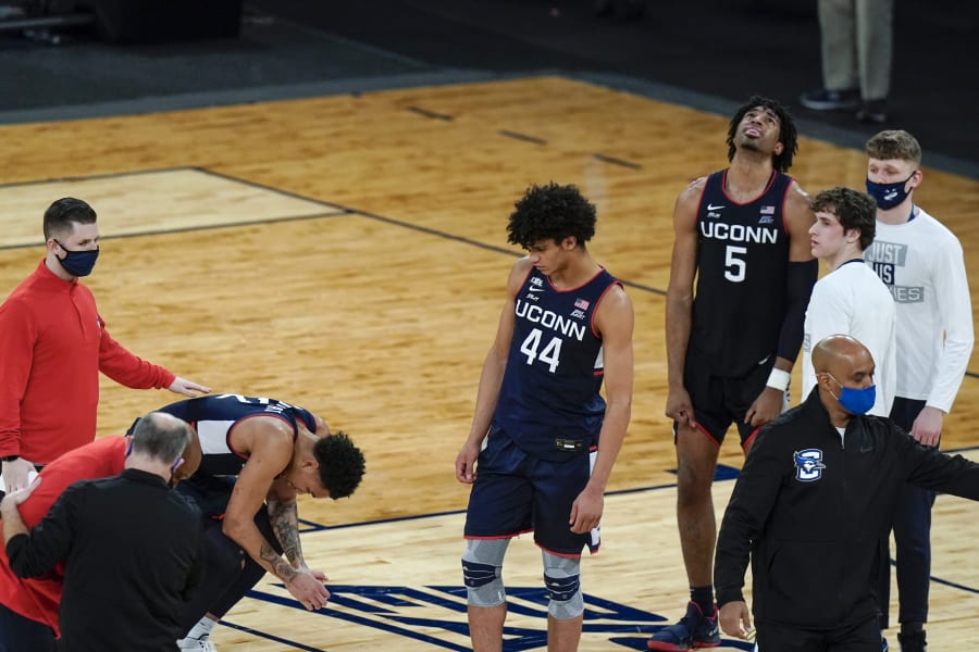 Trailing by three with 20 seconds left, UConn (15-7) got off three shots on its final possession: James Bouknight missed a 3-pointer off the dribble, but UConn chased down the rebound. Bouknight then drove to the basket, but his scoop came up short. The Huskies batted out another rebound and Tyler Polley had a wide-open 3 to tie from the wing with 5 seconds left and it rimmed out.