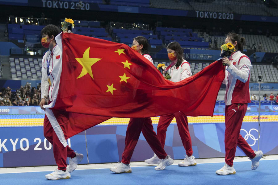 She turned in a dominating performance to win China's first swimming gold of the Tokyo Games in the 200 butterfly. Her Olympic-record time of 2:03.86 put her more than a body length ahead of the pair of Americans, Regan Smith and Hali Flickinger.