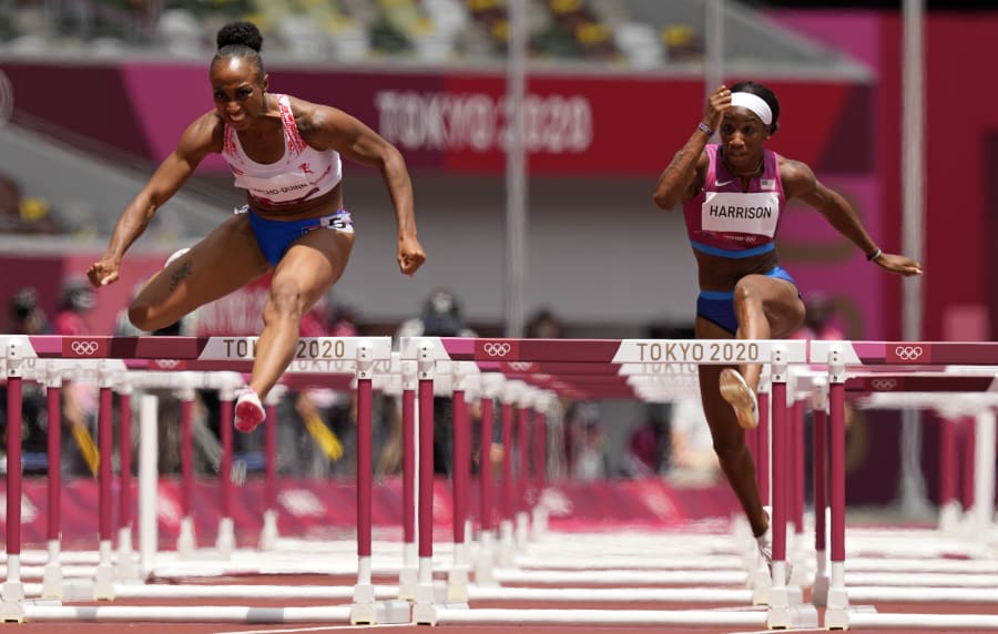 Jasmine Camacho-Quinn of Puerto Rico has won gold in the women’s 100-meter hurdles, powering ahead of American Keni Harrison.