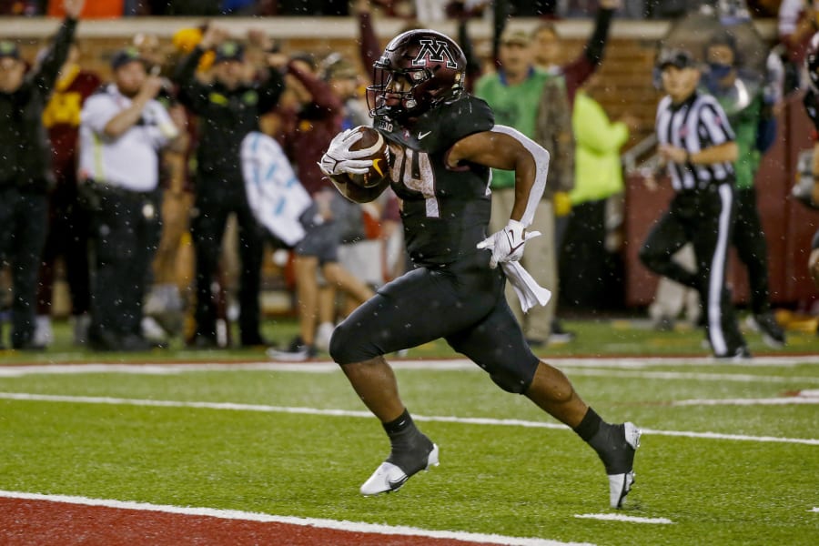 The second team preseason Associated Press All-American had 30 carries for 163 yards and two scores, both giving the Gophers the lead and the first one after Terell Smith intercepted an off-target pass by Stroud that hit Olave's hand.