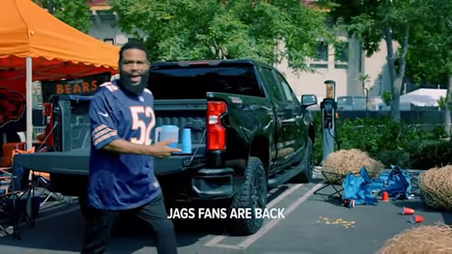 “Andy Dalton’s back ... Bears’ fans cry, they say Why-y-y” (a group of Bears’ fans who want Justin Fields in at quarterback was shown).