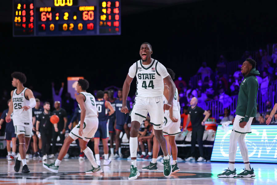 It was another tense finish for both teams after their first-round games had plenty of late-game drama — including two extra periods for the Huskies in a draining 115-109 win against No. 19 Auburn. But Michigan State did enough to take back momentum after the Huskies had gone up 60-55 with 1:41 left.