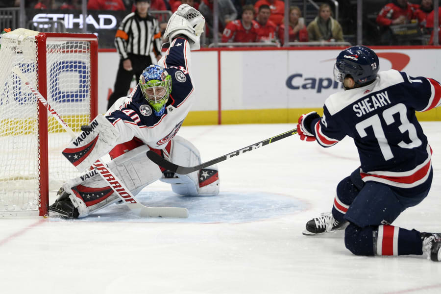 Tarasov, playing his second game for Columbus after making his NHL debut Thursday at Dallas, gave up a lot of rebounds early before settling down. He denied Washington's Connor McMichael with a sliding right-pad stop late in the second, the most impressive of his 29 saves on 31 shots.
