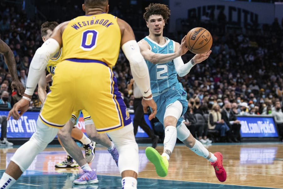 LaMelo Ball and Terry Rozier each had 20 points for the Hornets. Carmelo Anthony added 19 points for the Lakers, and rookie Austin Reaves had 16.