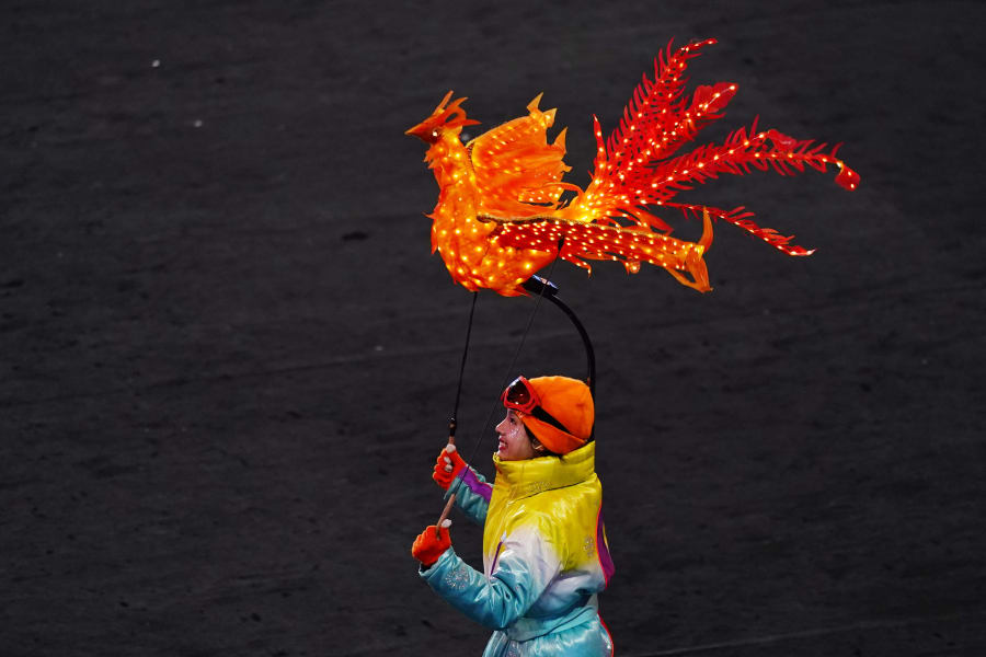 The snowflake was composed of placards used to introduce the athletes from the 91 different nations that will compete in China through Feb. 20. There was no cauldron to light, the traditional ending to most opening ceremonies.