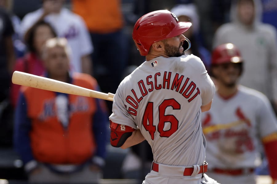 Paul Goldschmidt brings a 14-game hitting streak and 28-game on-base streak into St. Louis' early start at Pittsburgh. The slugger went 4 for 5 with two doubles and two RBIs to lead the Cardinals over the Pirates 5-4 on Saturday night.