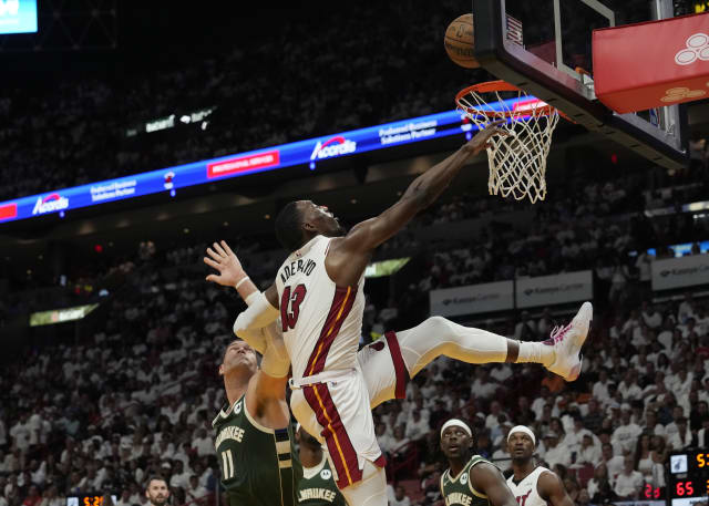 Bucks: Jrue Holiday and Khris Middleton each scored 14 for the Bucks. ... Milwaukee now has made 138 3-pointers in eight games against Miami this season, including playoffs. No team has ever made more vs. the Heat in a season; Boston made 126 in 10 games last season. … All three of Antetokounmpo's playoff triple-doubles have come on the road — two at Miami, the other at Boston.