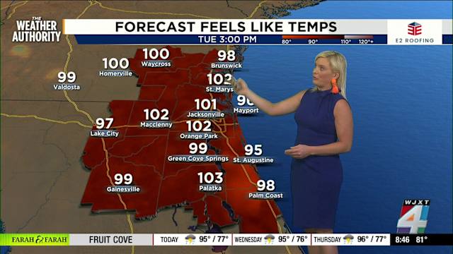 Read full article: Jacksonville swelters as heat index tops 100°: Meteorologist Katie Garner details storm and flood risksJacksonville braces for dangerous heat with 'feels like' temperatures in the hundreds, pop-up storms, and flash flooding risks, according to Meteorologist Katie Garner and The Weather Authority.