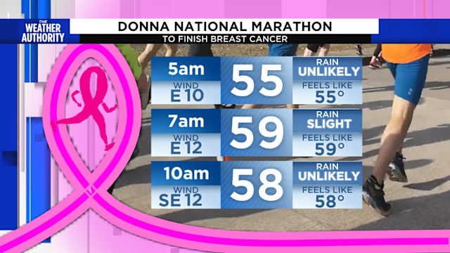 This weekend marks the DONNA Marathon and the race should start and end before rain increases Sunday afternoon and evening.