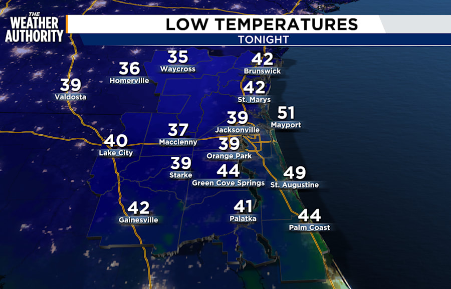 JACKSONVILLE, Fla. – After another frigid morning on Sunday, we can move forward with an increase in temperatures. We will be in the 70s during the day by mid-week.